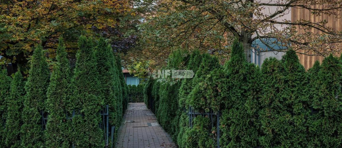 — Газон и вечнозелёные туи
